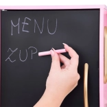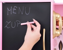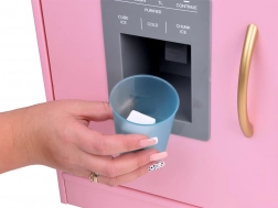 Le réfrigérateur comprend une ardoise noire pour écrire à la craie, idéale pour les listes de courses ou les recettes. Il comporte également un distributeur de glaçons pour un jeu réaliste.