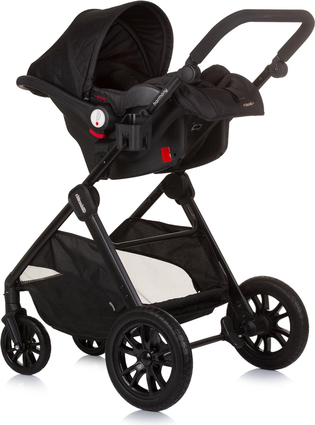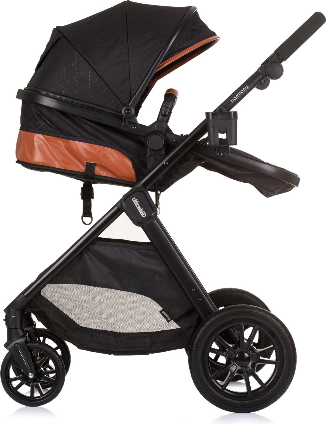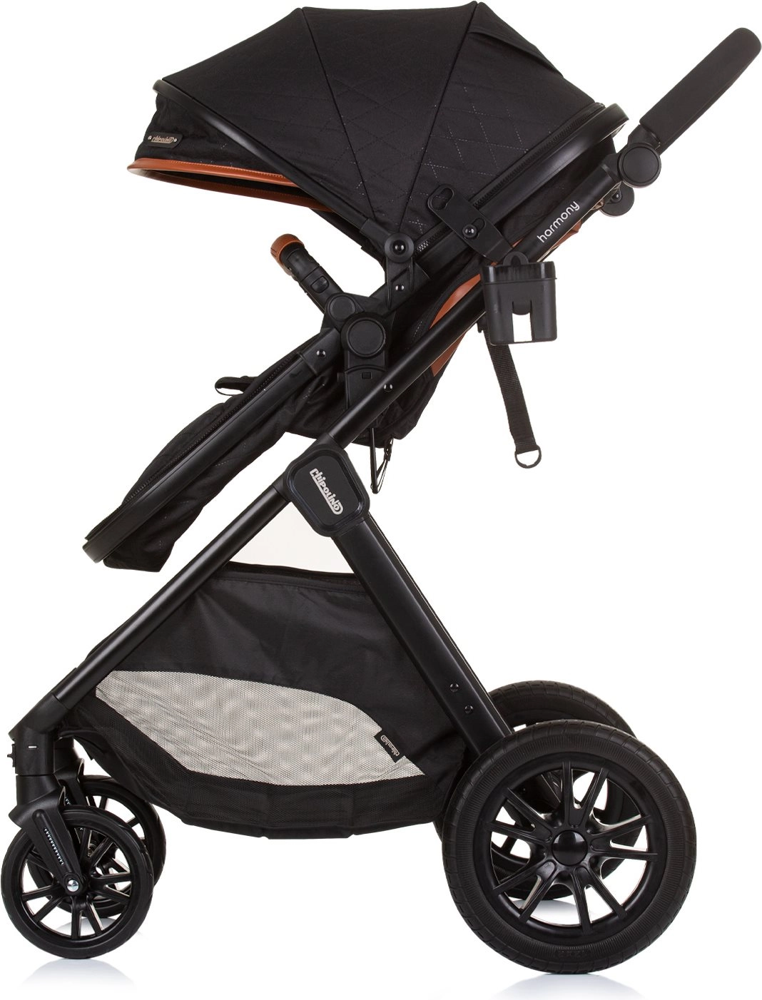 Poussette élégante et pratique pour parents modernes : Chipolino Harmony 2-en-1 combine une nacelle profonde et un siège sport en une seule unité. Elle offre un châssis léger et résistant, des roues en gomme avec suspension et blocage, un siège réversible face route ou face parent, une capote réglable avec pare-soleil et un riche équipement incluant couvre-jambes, sac et porte-gobelet.