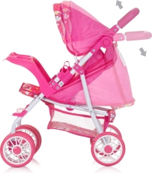 La ceinture de sécurité maintient la poupée en place, la capote réglable protège du soleil et le panier sous l’assise accueille tout le nécessaire.