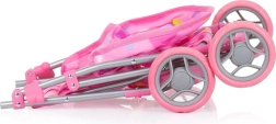 La poussette est conçue pour le confort et la sécurité. La capote réglable protège les poupées et peluches préférées du soleil, tandis que le panier sous la poussette accueille tous les accessoires nécessaires. La surface se nettoie facilement avec un chiffon sec ou légèrement humide.