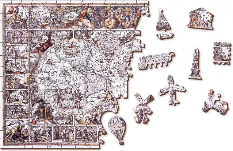 Plongez dans l’univers des explorateurs avec le puzzle en bois WOODEN CITY « Carte de l’Âge des découvertes ». Grâce à une découpe laser de précision, profitez de bords parfaitement lisses sans échardes et de détails fins qui donnent de la profondeur au motif. L’assemblage est un défi ludique : les pièces de formes variées offrent une difficulté accrue et certaines représentent des animaux, des monuments emblématiques ou des objets – beaucoup peuvent même tenir debout comme de petites figurines.