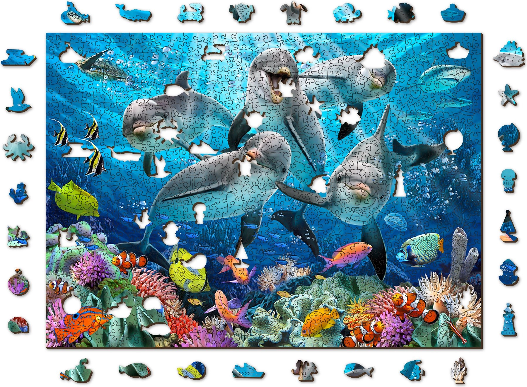 Offrez-vous une expérience unique avec ce puzzle au motif de dauphins joyeux. Grâce à des pièces spécialement façonnées, dont certaines ont la forme d’animaux et peuvent servir de petites figurines, vous profiterez d’un assemblage original riche en surprises. La découpe laser de précision garantit des détails nets et des bords parfaitement lisses, sans échardes.
