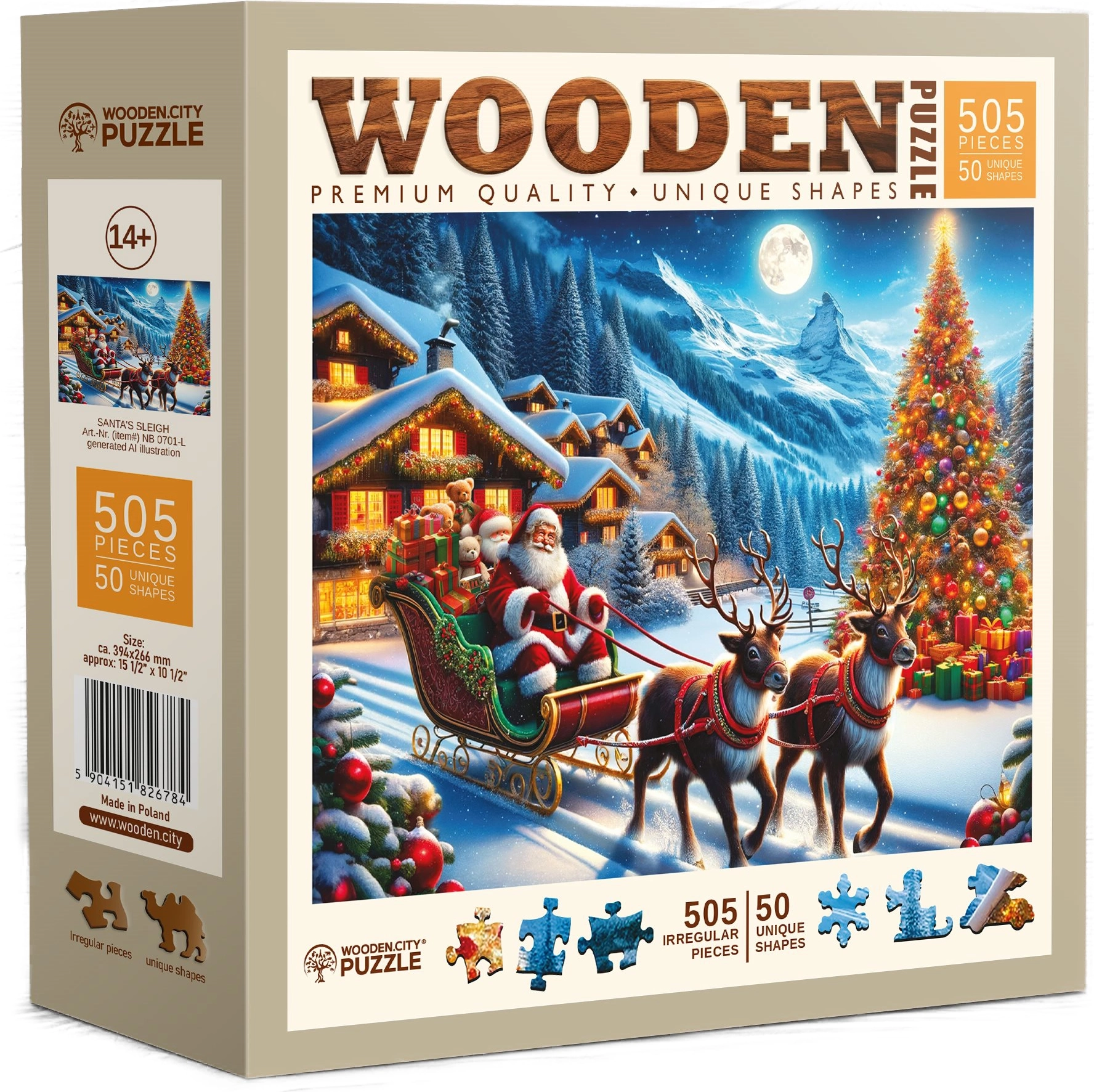 Ce puzzle en bois premium signé WOODEN CITY offre non seulement un magnifique motif de traîneau du Père Noël, mais aussi des heures de divertissement pour les longues soirées d’hiver. Grâce aux pièces découpées au laser aux bords lisses, l’assemblage est confortable, et les pièces spéciales en forme d’animaux, de bâtiments ou d’objets raviront tous les passionnés. Certaines pièces tiennent même debout comme de petites figurines.
