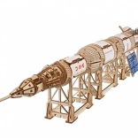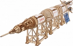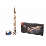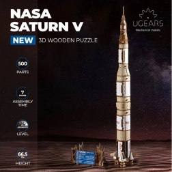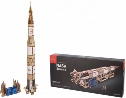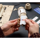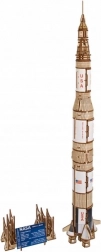 Le modèle est fabriqué en bois écologique de haute qualité avec des pièces prédécoupées pour un assemblage sans colle. Grâce au manuel détaillé, il convient aussi aux débutants habiles, tandis que les maquettistes expérimentés apprécieront l’ingéniosité technique, les éléments mécaniques et les détails soignés, y compris le module lunaire.