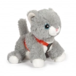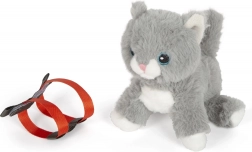 Un chat tout moelleux avec harnais, parfait pour les câlins et l’apprentissage des soins, développant empathie et sens des responsabilités.