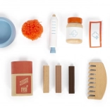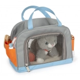 Le sac pratique avec maille d’aération et poches de rangement garde tous les accessoires réunis. La fabrication de qualité mêlant bois, plastique et textile assure une grande longévité et un jeu en toute sécurité. Sont inclus une seringue à ressort, une pince, un bandage et d’autres accessoires pour des soins réalistes.