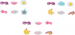 Un ensemble de badges décoratifs (lunettes, fleurs, étoiles, etc.) permet un look unique à chaque jeu.