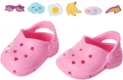 Adorables sandales en caoutchouc pour poupée BABY born 43 cm en trois variantes de couleurs, parfaites pour ravir chaque petite styliste. Grâce aux badges amovibles, les enfants peuvent personnaliser facilement les chaussures et en changer le look. Légères, confortables et idéales pour les aventures d’été, pour « l’eau » comme pour le bac à sable. Conviennent aux enfants à partir de 3 ans.