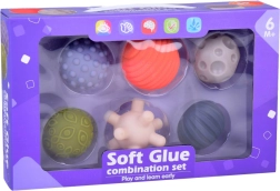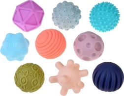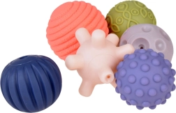 Chaque balle possède une surface unique avec des reliefs, des rainures ou des nodules qui favorisent le développement du toucher et augmentent la sensibilité des paumes et des doigts.