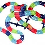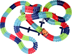Construisez pour les enfants leur propre monde de course : un set de circuit long, flexible et torsadé avec jusqu’à 291 pièces pour créer des boucles folles, des ponts et des collines. La piste atteint jusqu’à 580 cm, composée d’éléments colorés, et grâce aux ventouses, elle peut être fixée sur des murs ou fenêtres lisses pour des constructions extrêmes. Inclus : une petite voiture motorisée avec lumières, bandes en caoutchouc sur les roues pour une meilleure adhérence et une batterie rechargeable avec câble USB.
