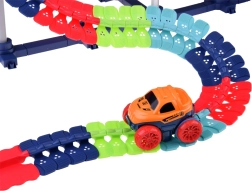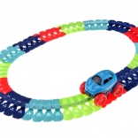 Ce circuit coloré stimule l’imagination, la motricité fine et la patience. Grâce aux jonctions flexibles, vous pouvez façonner, plier et modifier la piste à volonté – des sprints courts aux parcs grandioses pleins de divertissement. La petite voiture avec lumières LED démarre seule une fois allumée et gère même les virages plus serrés.