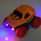 La petite voiture, dotée d’une batterie rechargeable et d’un éclairage LED, démarre seule d’une simple pression sur un bouton. Les bandes en caoutchouc sur les roues arrière augmentent la traction sur la piste.