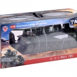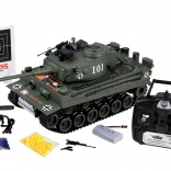Le coffret comprend tout le nécessaire pour s’amuser immédiatement: contrôleur 2,4 GHz, batterie rechargeable 7,4 V 1200 mAh, câble USB de charge, cible et munitions. Le char possède une construction solide, de larges chenilles pour évoluer dans des conditions difficiles et des lumières LED qui s’allument à la mise sous tension. Idéal comme cadeau pour les amateurs de matériel militaire, petits et grands.