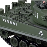 Profitez de combats dynamiques avec le modèle détaillé du char GERMAN TIGER. Le modèle radiocommandé à l’échelle 1:18 reproduit fidèlement les mouvements d’un vrai char: marche avant et arrière, rotations sur place, manœuvres en arc et rotation fluide de la tourelle avec canon réglable. Le tir de billes plastiques est accompagné d’un son de tir réaliste et d’un effet de recul.