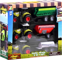 Ce set polyvalent comprend trois tracteurs robustes avec différentes remorques, faciles à atteler et à dételer. Les détails réalistes, les roues libres et les couleurs vives rendent le jeu vraiment immersif. En jouant, les enfants découvrent les principes du travail à la ferme, développent leur motricité fine et renforcent leur coordination œil-main.