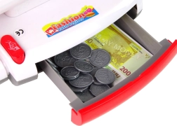 Grâce à la calculatrice fonctionnelle et au tiroir-caisse avec argent, la caisse rappelle une vraie caisse lors des jeux de commerce.