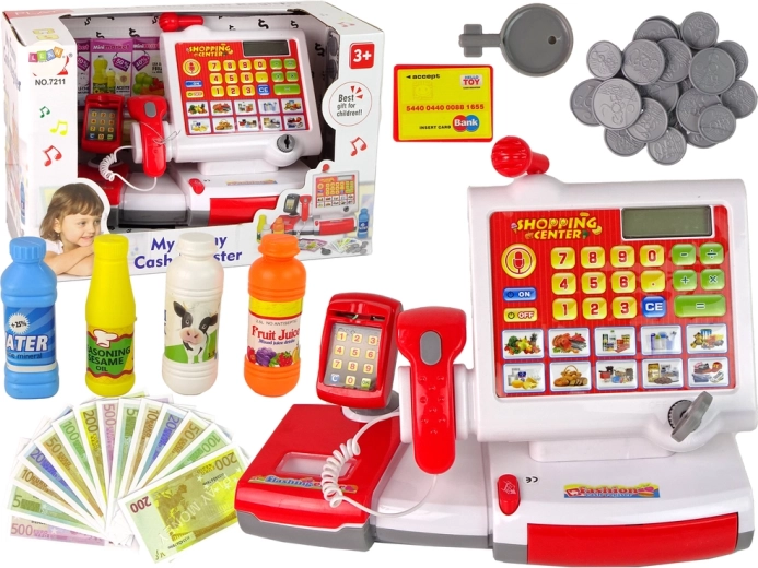 Avec la caisse, les enfants peuvent endosser différents rôles et améliorer leur communication ainsi que leurs aptitudes à la négociation. Elle comprend une calculatrice, un lecteur de codes et de nombreux autres accessoires.