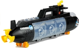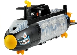 Le jouet se compose d’une structure noire combinée à des détails jaunes et des autocollants, ainsi que d’une partie transparente avec des compartiments pour les véhicules. Une partie est remplie — dans chaque casier se trouve un véhicule intéressant qui enrichira certainement le jeu. L’autre partie de la trieuse est vide, afin que l’enfant puisse ranger ses petites voitures préférées au même endroit. Le jouet est monté sur de petites roues pivotantes, ce qui permet de jouer en le faisant rouler sur le sol. La sous-marine comporte de nombreux détails qui donnent l’impression d’une petite réplique d’une machine grandeur nature. On peut voir l’hélice de bateau placée à l’arrière de la structure, ainsi que le périscope qui permet d’observer ce qui se passe au-dessus de la surface de l’eau. La trieuse transparente est décorée de hublots, ce qui a un rendu fantastique. Le jouet principal, ainsi que les véhicules inclus, est fabriqué en plastique durable et surtout solide, résistant aux dommages pouvant survenir pendant le jeu.