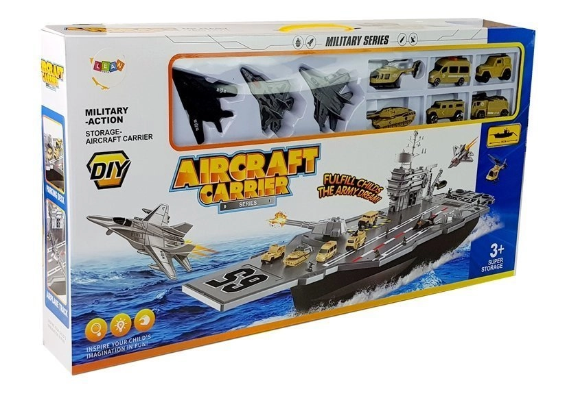 Nous présentons un porte-avions pour les enfants qui aiment jouer aux soldats et qui sont passionnés par les navires, car c’est la meilleure partie de l’ensemble. Le set développe l’imagination, la créativité et permet aux petits soldats d’élaborer des plans de bataille. À essayer absolument : ce jouet captivant vous plongera dans l’univers de la marine militaire. Les canons mobiles et les pièces d’artillerie sur le pont rendent le jeu encore plus réaliste. Le jouet se distingue par sa taille, avec une longueur allant jusqu’à 86 cm.