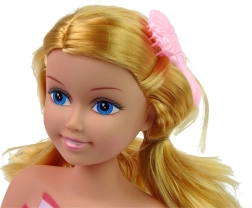 - Apparence réaliste avec de longs cheveux blonds
