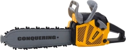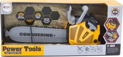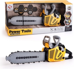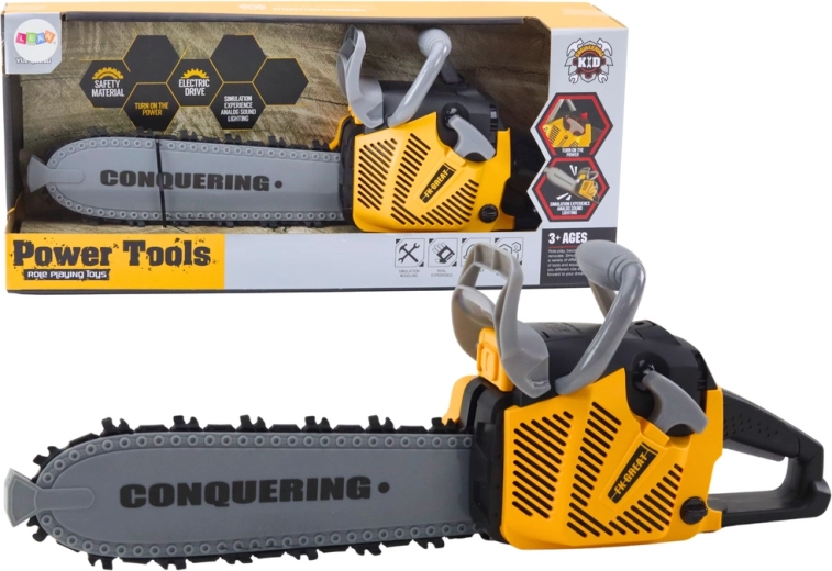 Cette tronçonneuse pour enfants est conçue pour reproduire fidèlement un véritable outil tout en restant totalement sûre. Une fois allumée et en appuyant sur le bouton de la poignée, la chaîne en caoutchouc commence à tourner, accompagnée de sons réalistes et de lumières clignotantes. Grâce à sa poignée ergonomique, elle tient bien en main et se manie facilement.