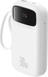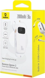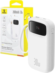 Batterie externe Baseus QPow 2 20000 mAh 30 W avec câble USB‑C intégré, 2× USB‑C, blanc