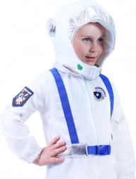 La combinaison blanche avec éléments argentés et écussons crée un look spatial réaliste qui ravira tout jeune explorateur.
