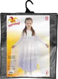 Ce déguisement stylé de reine de l’hiver pour fille offre une allure féerique grâce à l’association du blanc, de nuances violettes et d’éclats scintillants. Le haut est orné de paillettes, une jupe en tulle aérienne avec motif part de la taille, et l’ensemble est sublimé par une traîne décorée.