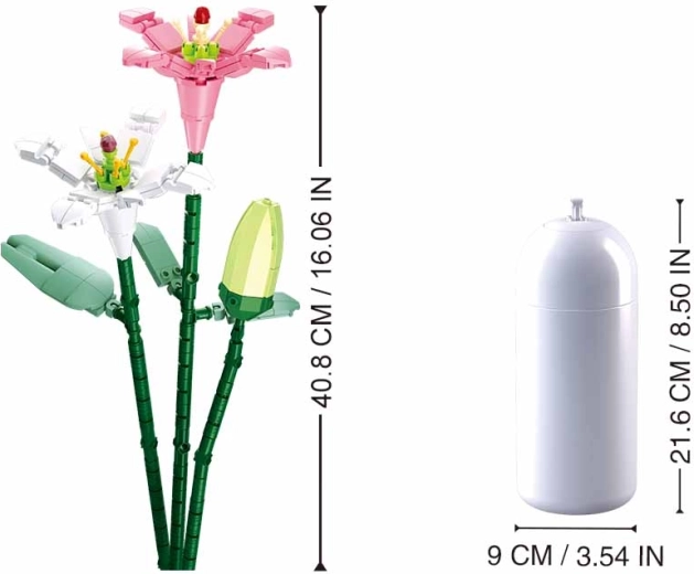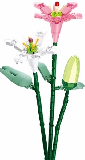 Transformez ce set de construction en accessoire design pour votre intérieur. Le set SLUBAN Flowers Lys dans un vase se compose en un bouquet réaliste aux tons délicats avec un vase blanc stable. Le modèle fini se distingue sur une étagère, un bureau ou dans le salon, sans arrosage ni flétrissement.