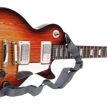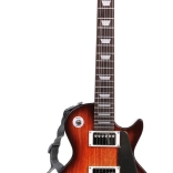 La finition marron, la forme de guitare électrique, la sangle et les commandes offrent une expérience de jeu authentique.