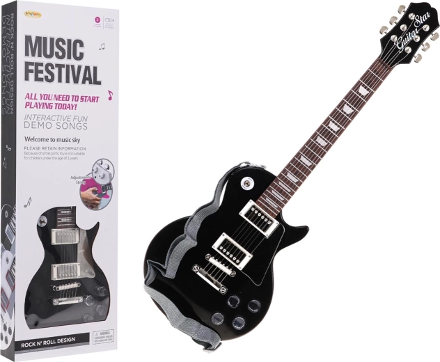 Guitare électrique ludique pour enfants avec micro-casque pour de petits musiciens dès 3 ans. Elle offre un réglage du volume, un choix de rythmes et de mélodies préenregistrées, un look réaliste et une bandoulière réglable pour jouer confortablement. Un divertissement qui développe le sens du rythme et la motricité fine.