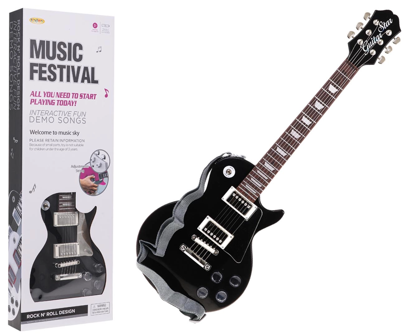 Un micro-casque est inclus et peut être branché directement sur la guitare – votre enfant deviendra la star de son propre concert. Sa conception robuste, sa structure légère et la sangle permettent de jouer aussi bien debout qu’assis.