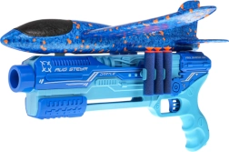 La pistolet bleue sert aussi de lanceur de planeur – il volera loin et assurera beaucoup de mouvement au jardin comme sur le terrain de jeu.