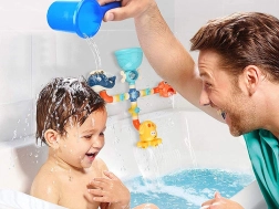 Le jouet est doté de ventouses puissantes pour une fixation stable sur surface lisse (carrelage, baignoire). Des composants plastiques sûrs et colorés invitent à l’exploration et développent la motricité fine, la pensée logique et la créativité.