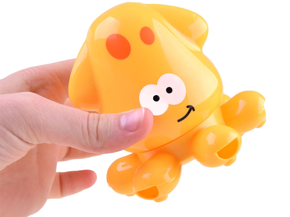Le jouet adhère aux surfaces lisses grâce à plusieurs ventouses. Il se fixe facilement sur le carrelage ou la paroi de la baignoire et se retire sans difficulté après le bain.