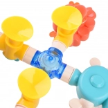 Versez de l’eau dans l’entonnoir supérieur et regardez-la circuler dans les tuyaux, actionner les éléments et créer des effets d’eau captivants qui retiennent l’attention des enfants.