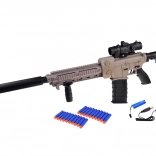 Profitez d’un divertissement d’action avec ce blaster en mousse robuste au look réaliste de carabine tactique. Il offre un rechargement automatique, un tir électronique depuis un chargeur pour fléchettes en mousse, une optique coulissante pour un meilleur visé et une construction légère en plastique pour un port confortable. Le pack comprend un accumulateur rechargeable, un chargeur USB, une sangle et 20 fléchettes en mousse pour jouer immédiatement.