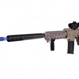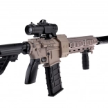 La construction légère en plastique résistant et la poignée avant réglable augmentent le confort de jeu. L’optique coulissante aide à des touches plus précises à plus longue distance, tandis que le chargeur amovible permet de recharger les munitions rapidement. Inclus: accu 3,7 V/500 mAh et chargeur, pour partir à l’action juste après la charge.