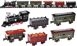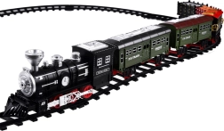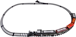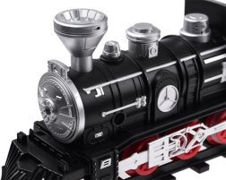 Ce circuit de train électrique détaillé offre l’expérience authentique d’un train à vapeur classique. La locomotive est alimentée par une batterie 800 mAh (incluse), avance seule sur les rails et bénéficie d’une meilleure adhérence grâce aux bandes en caoutchouc sur les roues arrière. Pour un réalisme maximal, elle dispose d’un feu avant rouge, d’effets sonores et de la fumée sortant de la cheminée.