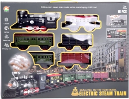 Circuit de train à vapeur électrique avec fumée, lumière et 5 wagons