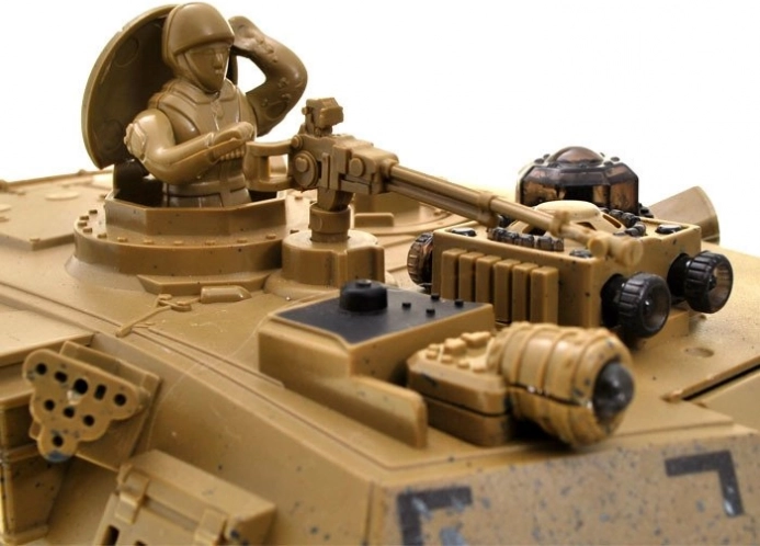 • Effets LED – phares avant, éclairage de la tourelle et indicateurs arrière « d’état de combat ».