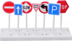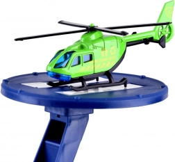 Inclus: 2 petites voitures en métal, un hélicoptère, 7 panneaux de signalisation, des autocollants et un grand tapis avec plan de ville.