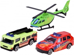 - Set complet : 2 petites voitures en métal, hélicoptère, 7 panneaux de signalisation, autocollants, tapis urbain.