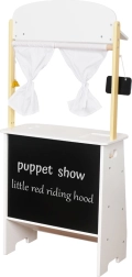 Des parois fermables et des rideaux transforment le stand en théâtre de marionnettes. Les enfants peuvent raconter des histoires, renforcer leur confiance en eux et développer leur créativité.