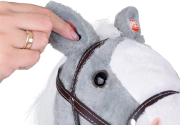 Des boutons placés sur les oreilles déclenchent des sons de hennissement et de galop, tandis que le cheval ouvre et ferme la bouche, renforçant le réalisme du jeu.