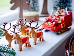 - Dimensions du traîneau du Père Noël avec l’attelage de rennes : environ 8 cm de hauteur, 30 cm de longueur et 7 cm de largeur.