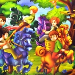 Puzzle pour enfants de D-TOYS avec 35 pièces en forme de poneys, offrant un défi de composition plus exigeant pour les enfants.