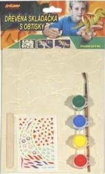 - Pièces en bois, peintures, pinceau, set de décalcomanies
