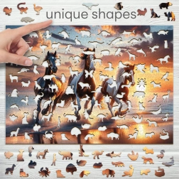 Plongez dans l’univers des puzzles en bois de qualité avec un motif de chevaux sauvages sur la plage. WOODEN CITY propose des pièces découpées au laser en panneau HDF robuste de 3–4 mm d’épaisseur, caractérisées par des bords lisses et une longue durabilité. Une partie des pièces est en forme d’animaux et, grâce à leurs détails fins, peut même servir de petites figurines.