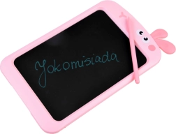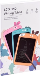 Grâce à son format léger et fin (env. 25 × 14,5 × 0,9 cm), la tablette se glisse dans un sac à dos ou un sac à main. Le support intégré pour le stylet évite les pertes et les oreilles en caoutchouc ajoutent une touche ludique et une prise en main agréable. L’alimentation est assurée par une pile CR2025 (incluse).